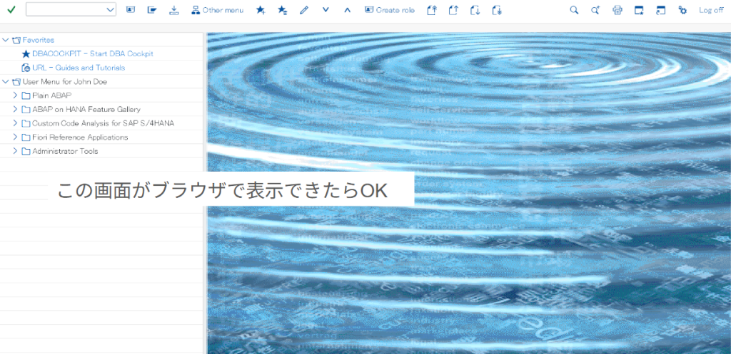 有効化後、『http://{ドメイン:ポート}/sap/bc/gui/sap/its/webgui』へ遷移し、webGUI画面が表示されていることを確認しましょう。