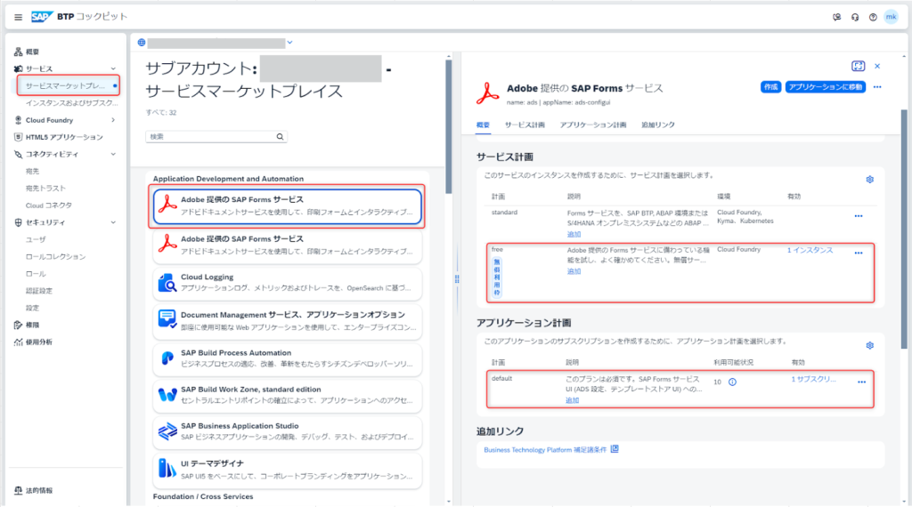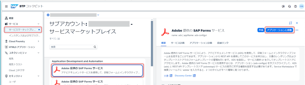 -「Forms Service by Adobe(Adobe 提供の SAP Forms サービス)」(name: ads | appName: ads-configui)