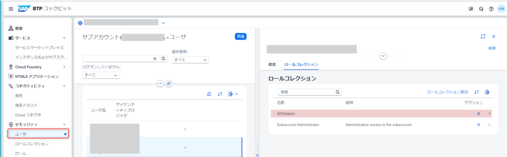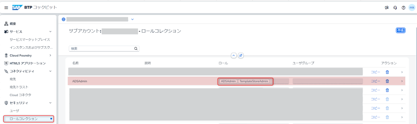 3-1.BTPにてサブアカウントにサインインし、「ロールコレクション」を開く。