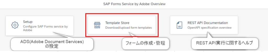 1.「SAP Forms Service by Adobe Overview」ページから「Template Store」を開く。