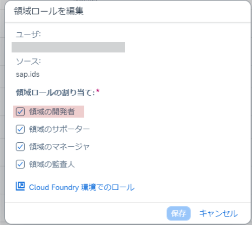 ※「領域の開発者」ロールを付与したユーザーで実施する必要がある。
