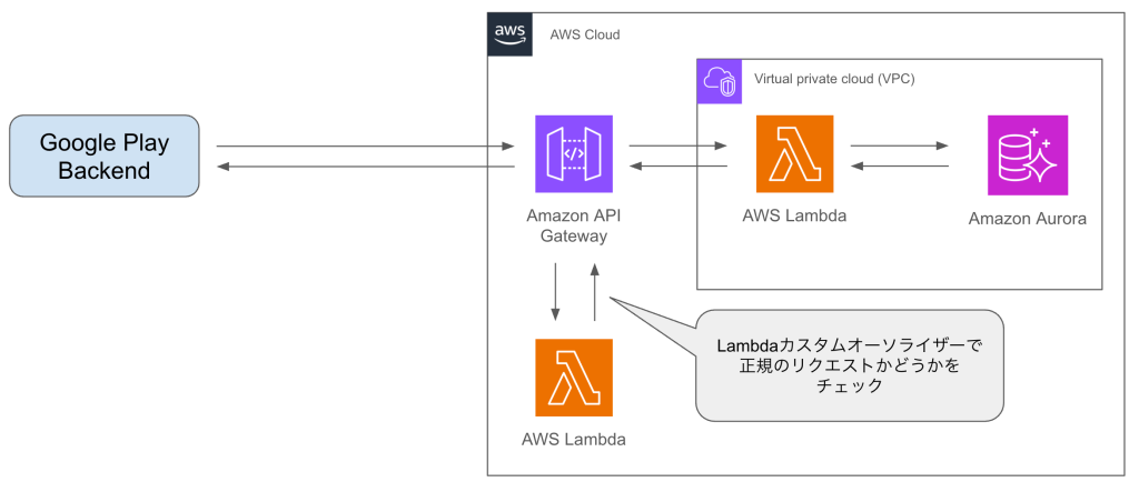 それでは、AWS環境でAndroidのサブスクリプションバックエンドを構築する場合のアーキテクチャについて説明します。