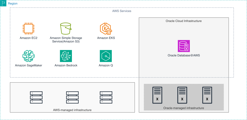 2025 年 7 月に一般提供が開始された Oracle Database@AWS は、単なるマネージドサービスではなく、AWS のデータセンター内に Oracle のクラウドインフラ(OCI)が物理的に設置される提供モデルです。