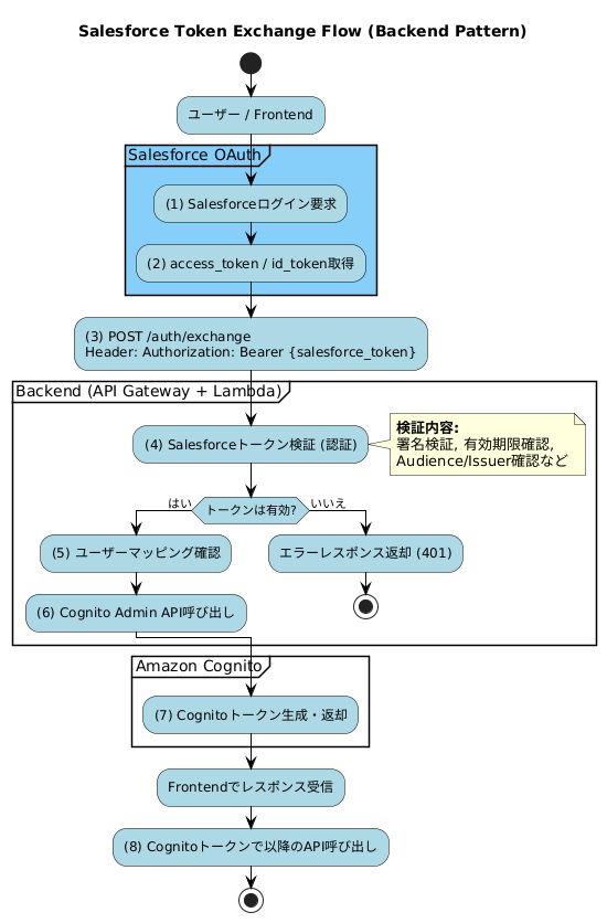 - Salesforce OAuth → Backend API (トークン交換)