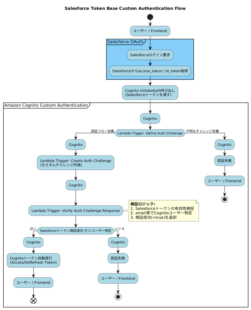 - Frontend → Salesforce → Cognito Trigger → Cognito → APIの流れを可視化
