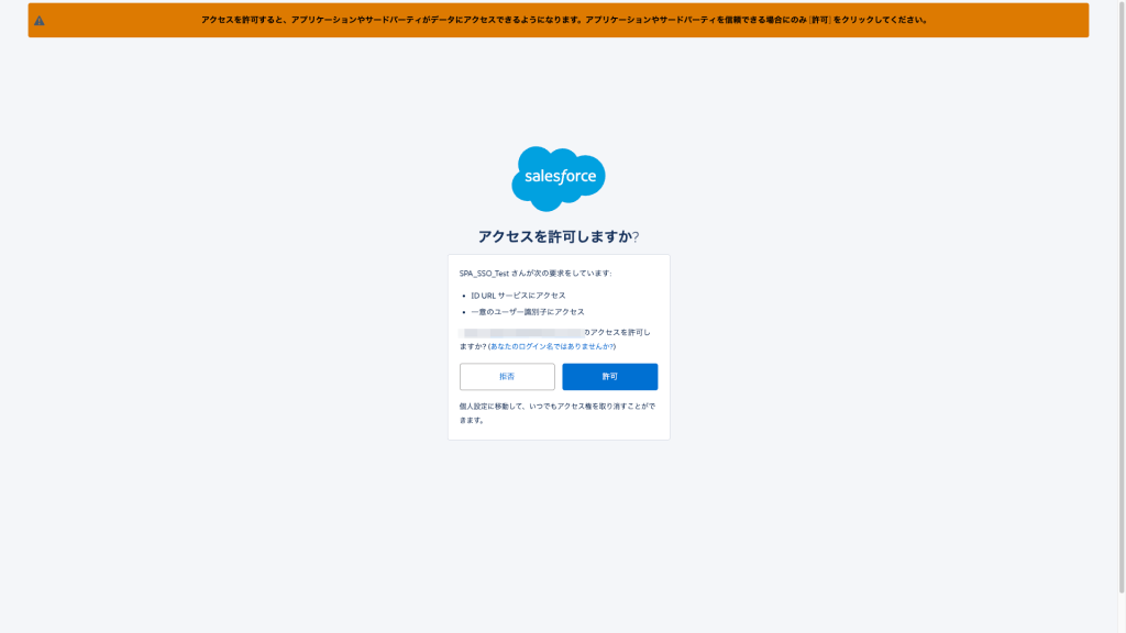 2もしくは3のログイン方法を選択し、ブラウザで既にSalesforceへログイン済みだった場合は、下記のようなアクセス許可画面へ遷移します。