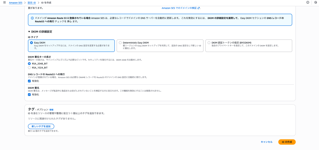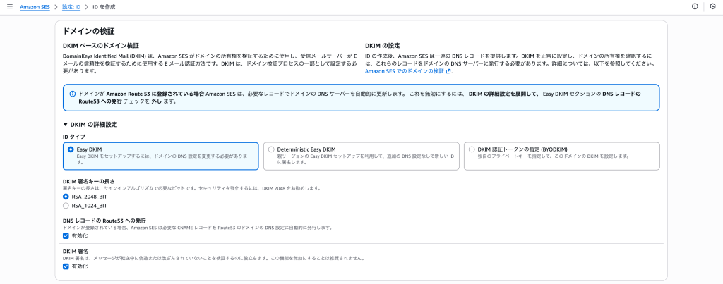 - DKIM 署名キーの長さ: RSA_2048_BITを選択